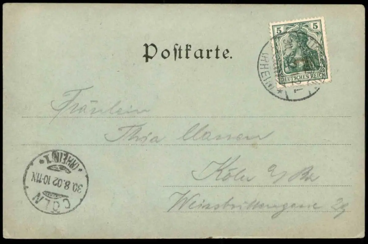 Gelaufen: 30.08.1902 nach CölnErhaltung (s. Scan): gut / 915566