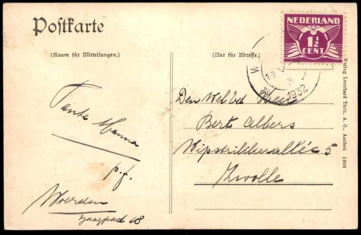 Gelaufen: 19.05.1932 nach ZwolleErhaltung (s. Scan): gut / 916235