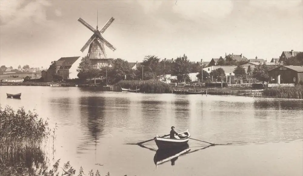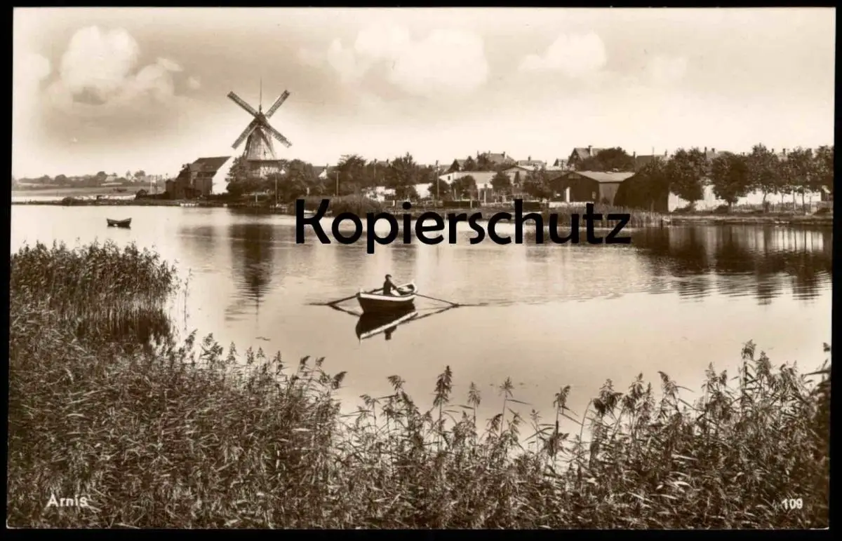 ALTE POSTKARTE ARNIS WINDMÜHLE Mühle Mill Moulin Windmill Molen Ruderboot Schleswig-Holstein cpa postcard Ansichtskarte