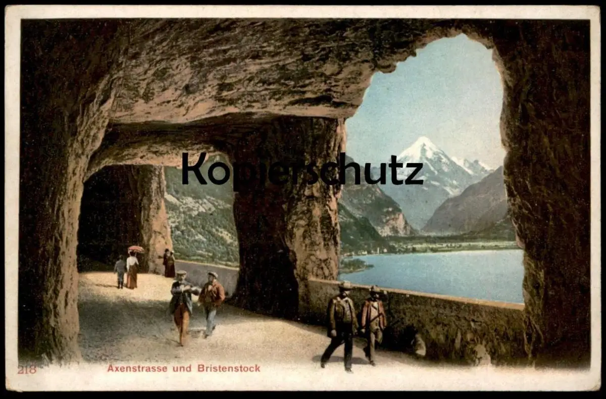 ALTE POSTKARTE AXENSTRASSE UND BRISTENSTOCK SPAZIERGÄNGER PERSONEN VIERWALDSTÄTTERSEE cpa postcard AK Ansichtskarte