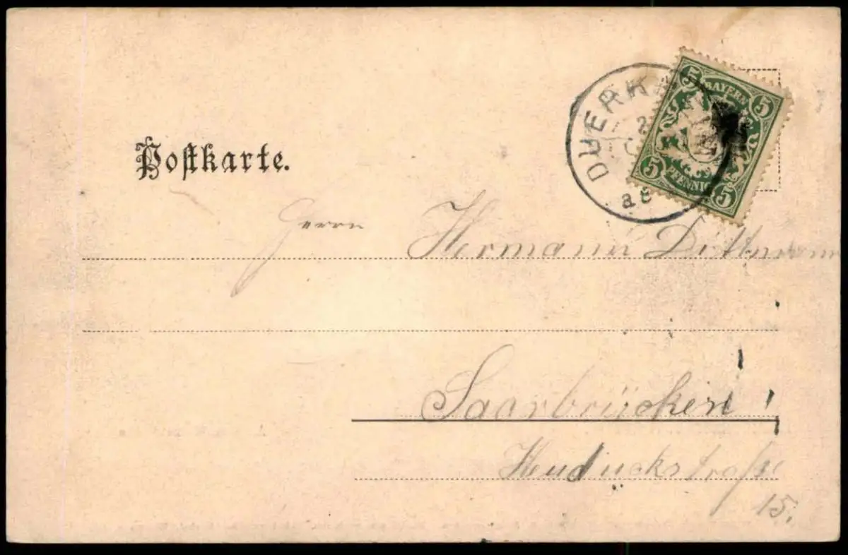 Gelaufen: 02.10.xxxx mit Stempel Duerkheim nach Saarbrücken