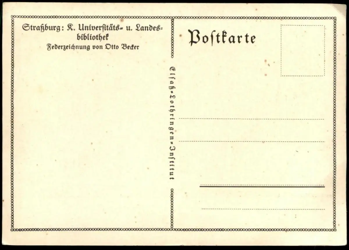 ÄLTERE POSTKARTE LANDESBIBLIOTHEK STRASSBURG OTTO BECKERVerlag: Elsass-Lothringen-Institut