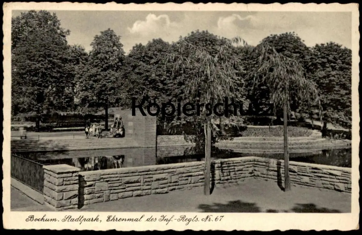 ALTE POSTKARTE BOCHUM 1936 STADTPARK EHRENMAL DES INFANTERIE-REGIMENTES Nr. 67 Regiment cpa postcard AK Ansichtskarte