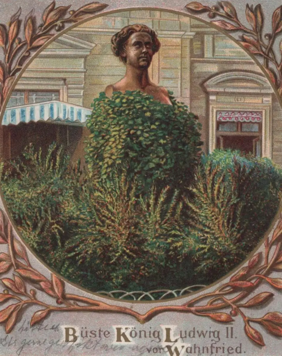 ALTE POSTKARTE BÜSTE KÖNIG LUDWIG II. VOR WAHNFRIED BAYREUTH ERINNERUNG AN DIE BAYREUTHER FESTSPIELE postcard cpa AK