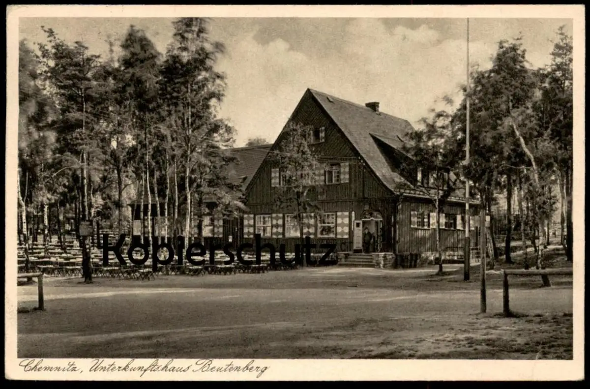 ALTE POSTKARTE CHEMNITZ 1932 UNTERKUNFTSHAUS BEUTENBERG 20 MINUTEN VON DER ENDSTATION DER STRASSENBAHN Ansichtskarte AK
