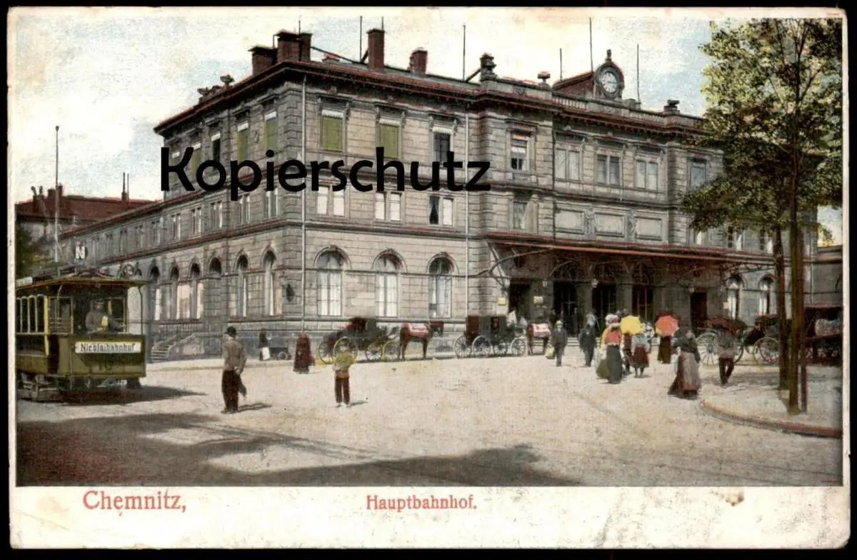 ALTE POSTKARTE CHEMNITZ HAUPTBAHNHOF STRASSENBAHN WAGEN 10 NICOLAIBAHNHOF tram tramway station gare cpa postcard AK