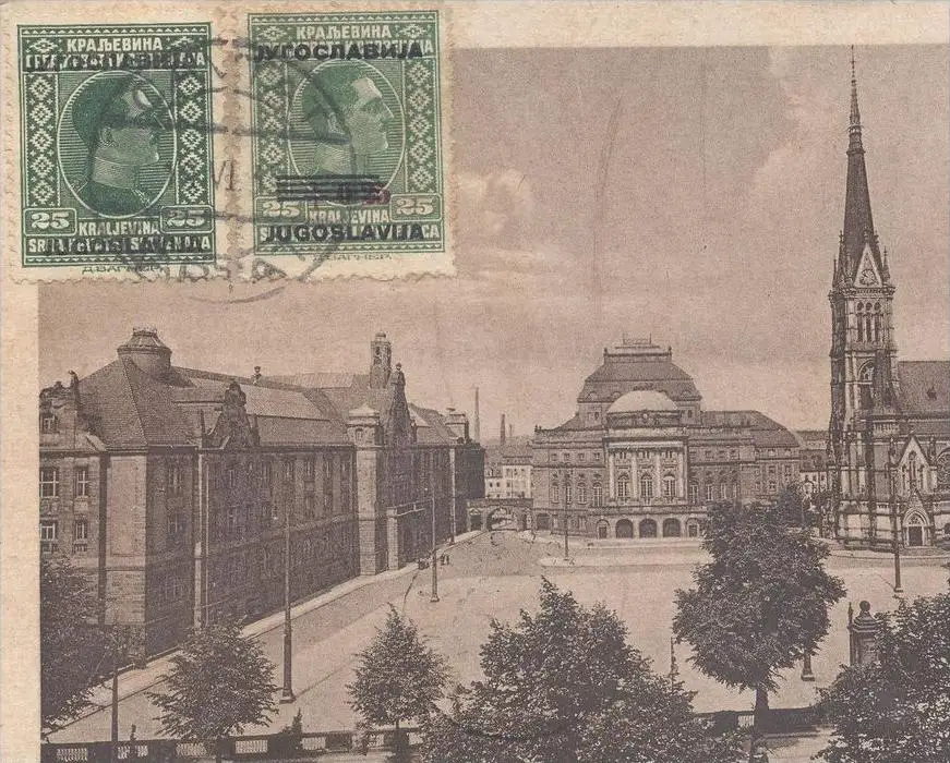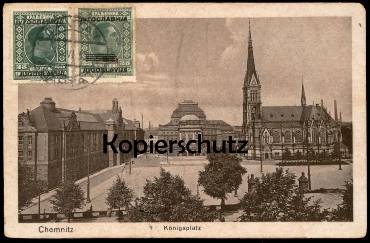 ALTE POSTKARTE CHEMNITZ KÖNIGSPLATZ BRIEFMARKEN 1925 CHARITY SERIE ÜBERDRUCKT JUGOSLAVIJA stamps on front postcard cpa