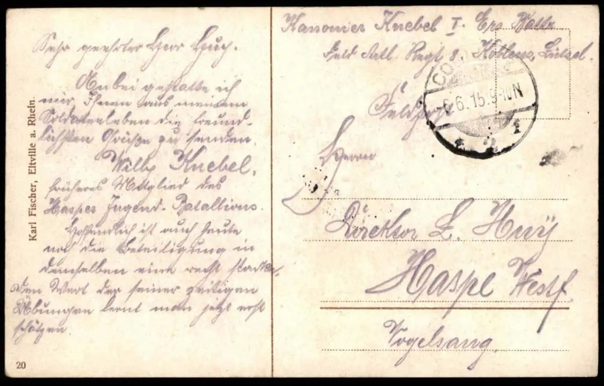 Gelaufen: 06.06.1915 als Feldpost mit Stempel Coblenz nach Haspe