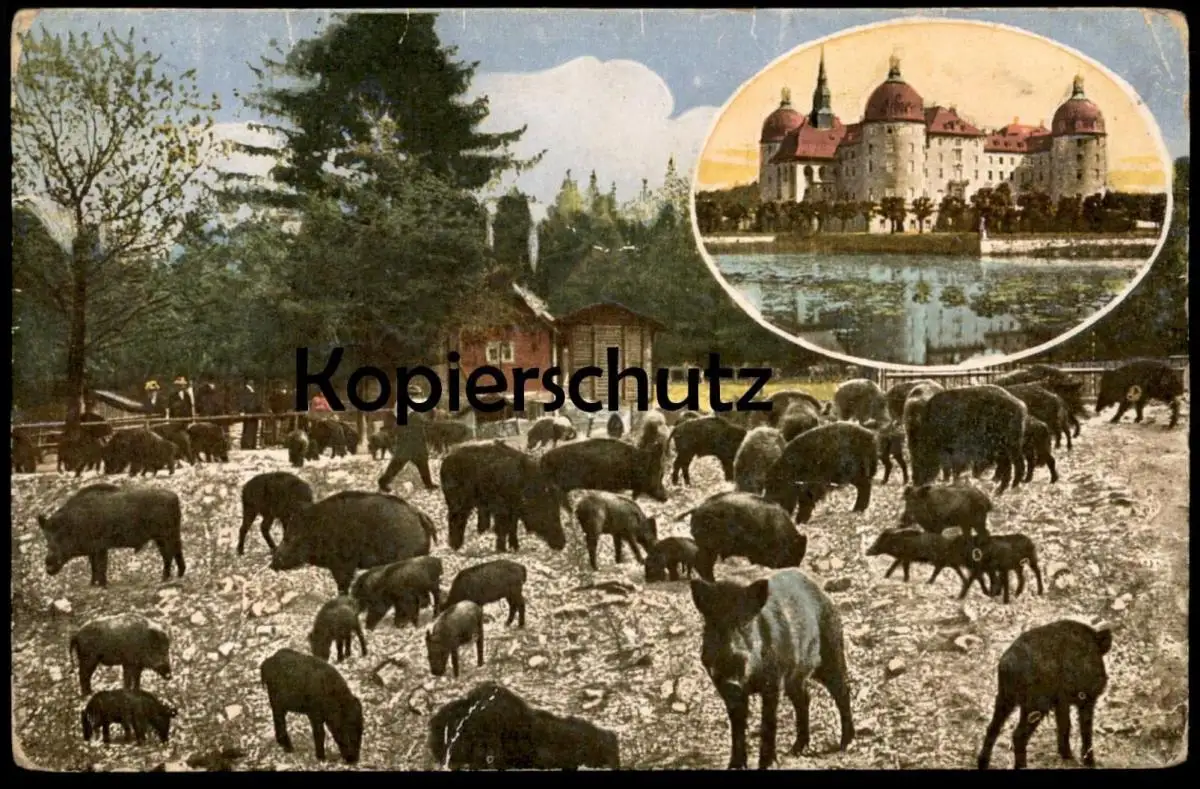 ALTE POSTKARTE MORITZBURG DRESDEN FÜTTERUNG WILDSCHWEINEVerlag: Carl Platz, Photograph Moritzburg