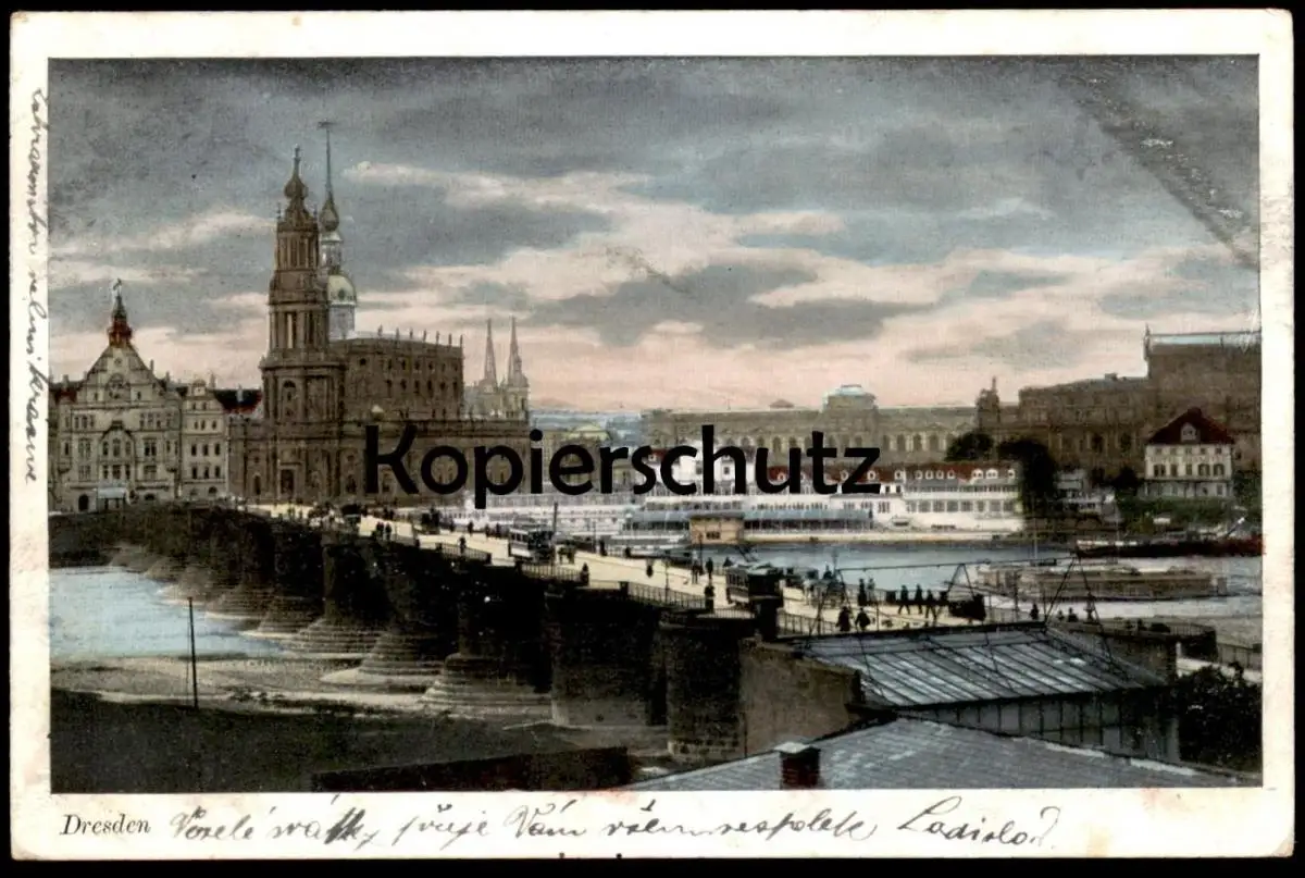 ALTE POSTKARTE DRESDEN PANORAMA 1905 Brücke Totalansicht Total Blick über die Elbe postcard cpa Ansichtskarte AK