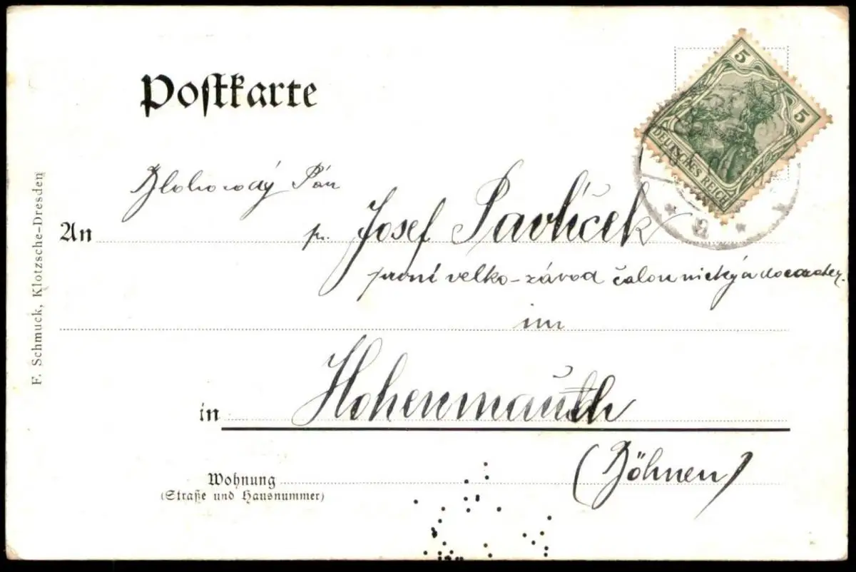 Gelaufen: 20.06.1905 mit Stempel Dresden nach Hohenmauth