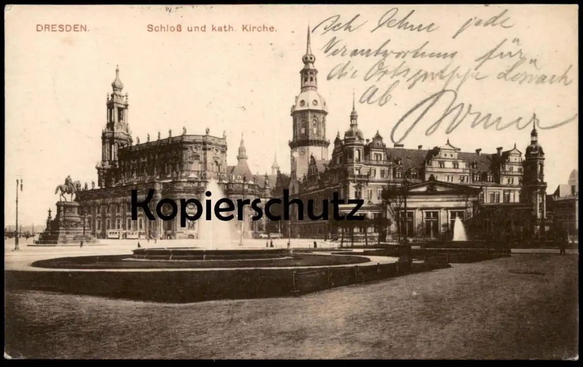 ALTE POSTKARTE DRESDEN SCHLOSS UND KATHOLISCHE KIRCHE SPRINGBRUNNEN