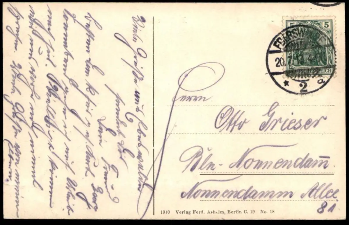 Gelaufen: 20.07.1913 mit Stempel Eberswalde nach Berlin Nonnendamm