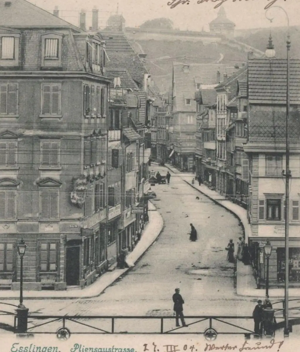 ALTE POSTKARTE ESSLINGEN PLIENSAUSTRASSE 1904 STEMPEL KÖNIGLICH WÜRTTEMBERGISCHE BAHNPOST cpa Ansichtskarte postcard AK