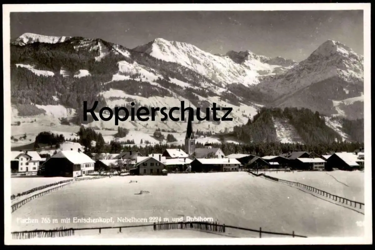 ALTE POSTKARTE FISCHEN 765 M MIT ENTSCHENKOPF NEBELHORN 2224 M RUBIHORN IM WINTER