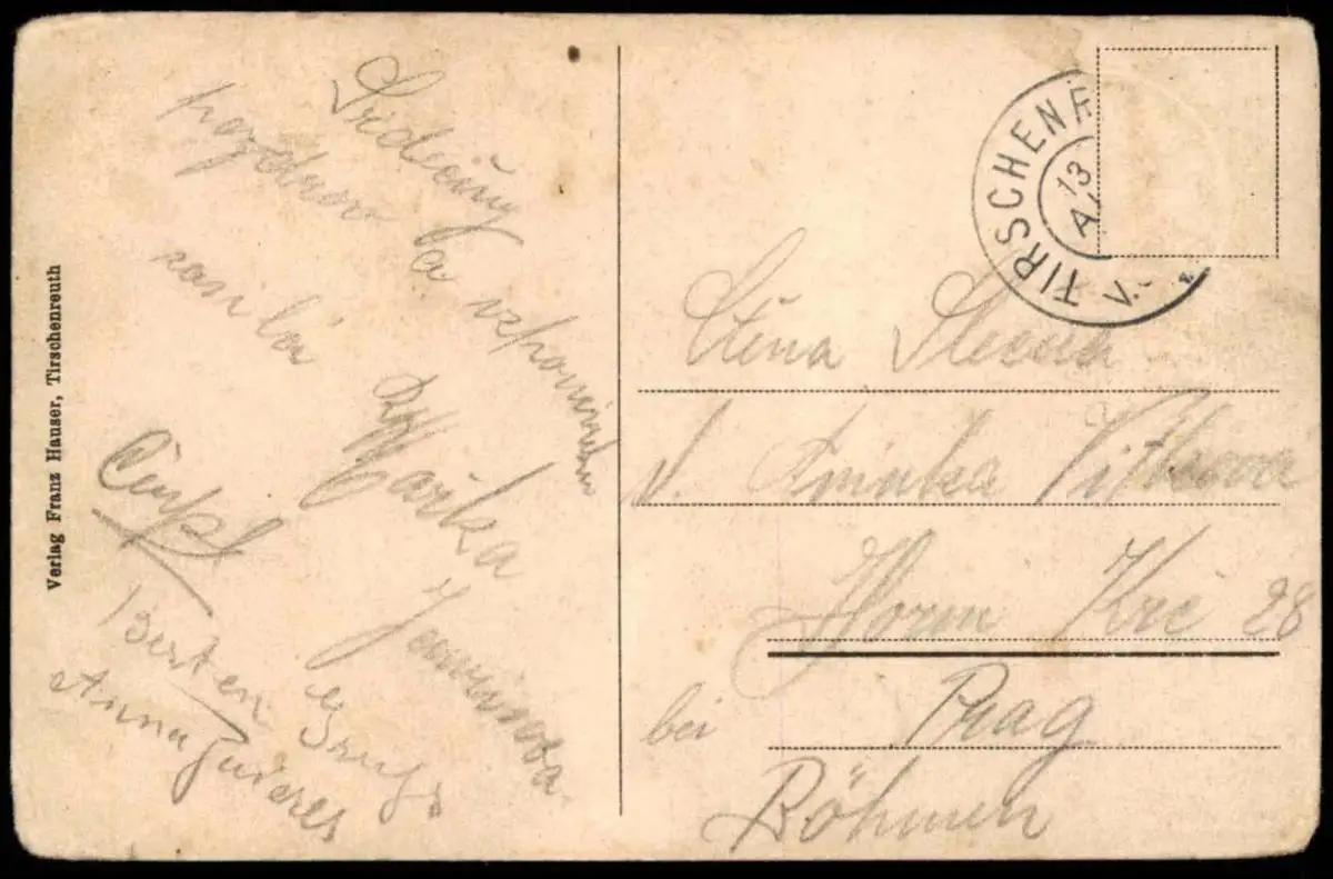 Gelaufen: 13.08.190x mit Stempel Tirschenreuth nach Prag, Briefmarke (sauber abgelöst)