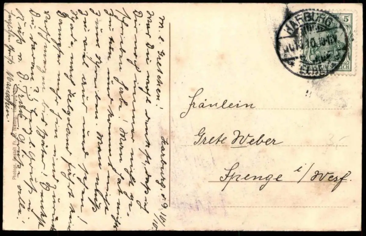 Gelaufen: 10.10.1910 10-11 mit Stempel Hamburg nach Spenge