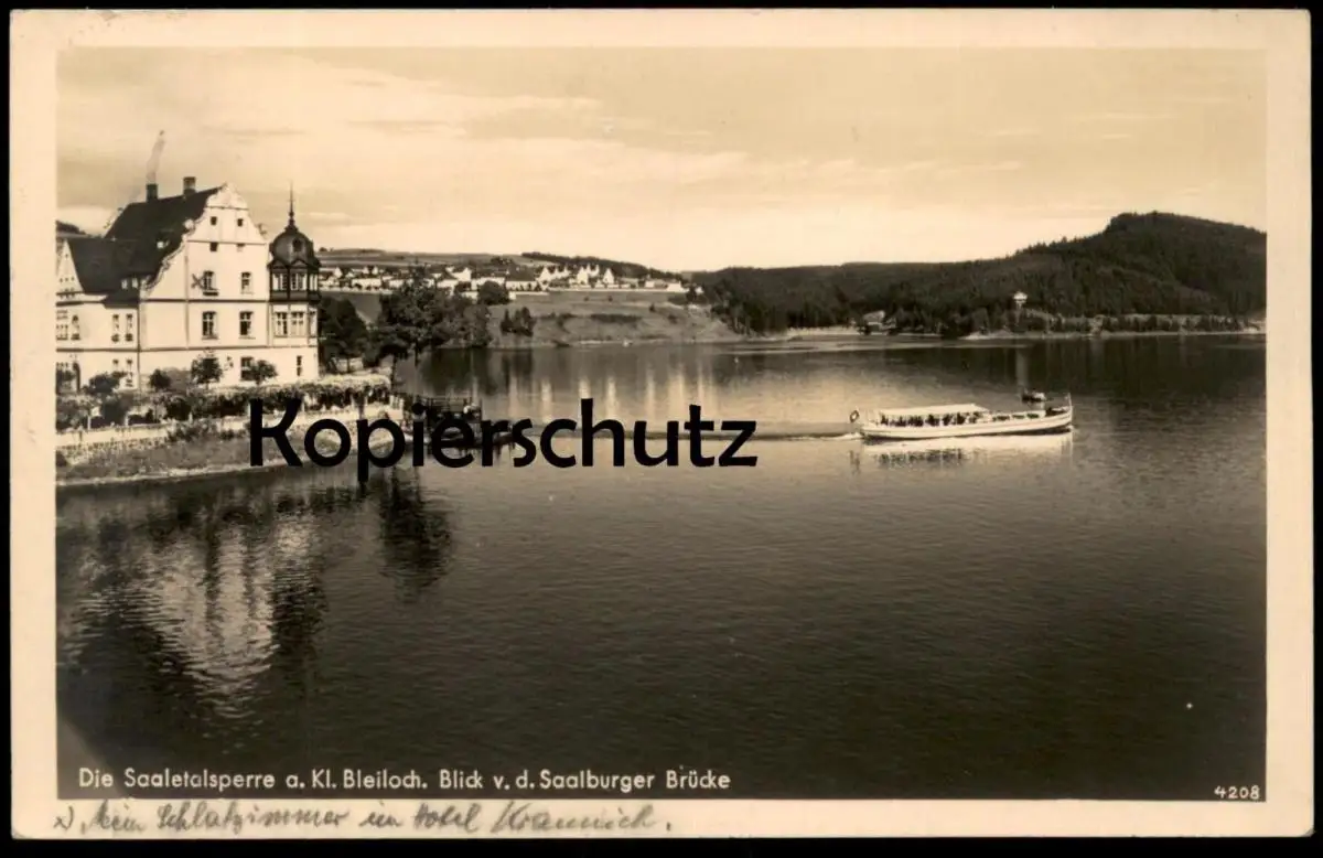 ALTE POSTKARTE HOTEL KRANICH SAALETALSPERRE AM KLEINEN BLEILOCH BLICK VON SAALBURGER BRÜCKE SAALBURG-EBERSDORF Schiff AK