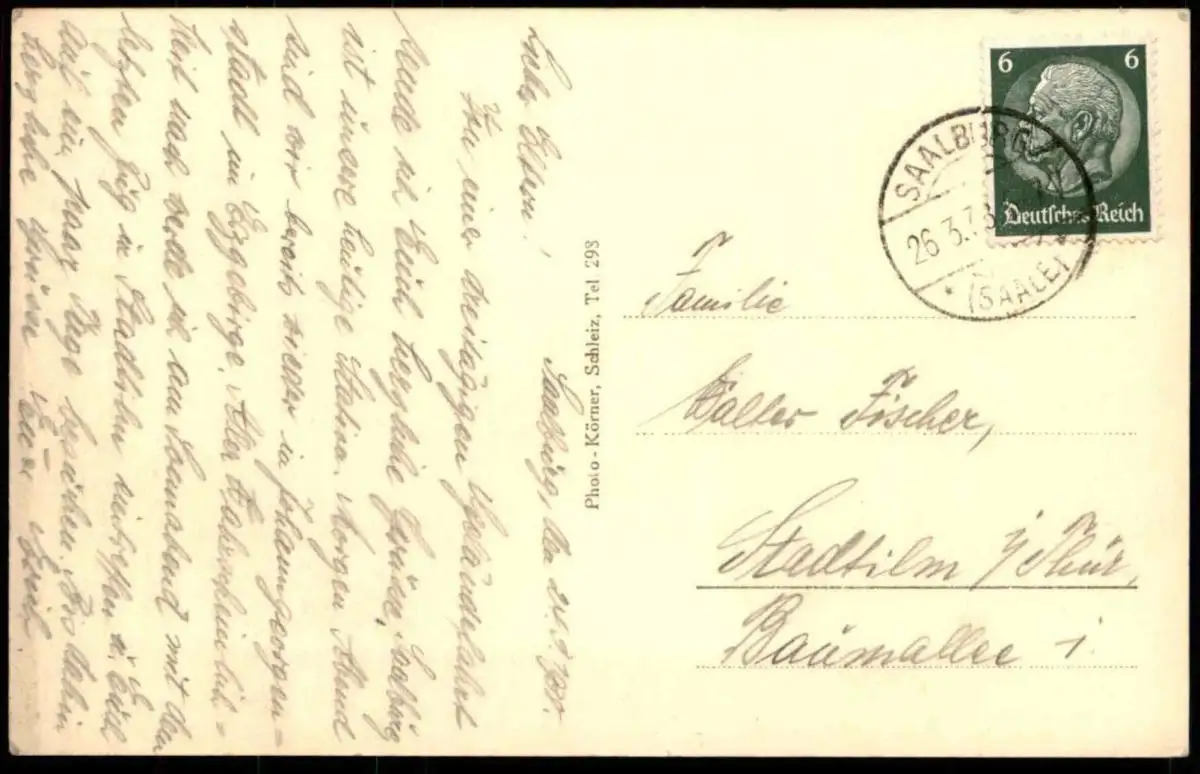 Gelaufen: 26.03.1938 mit Stempel Saalburg Saale nach StadtilmErhaltung (s. Scan): gut / 915468