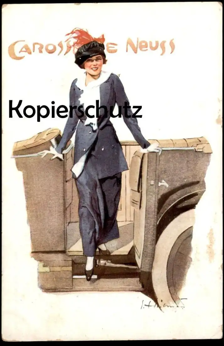 ALTE POSTKARTE JOS. NEUSS CAROSSERIE DAME HUT LUXUS-KAROSSERIEN BERLIN HALENSEE Ansichtskarte postcard cpa AK