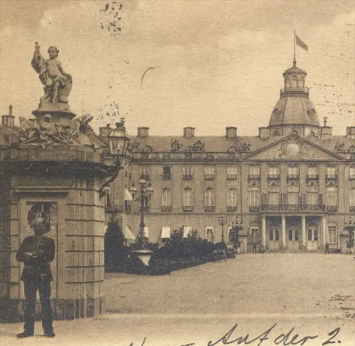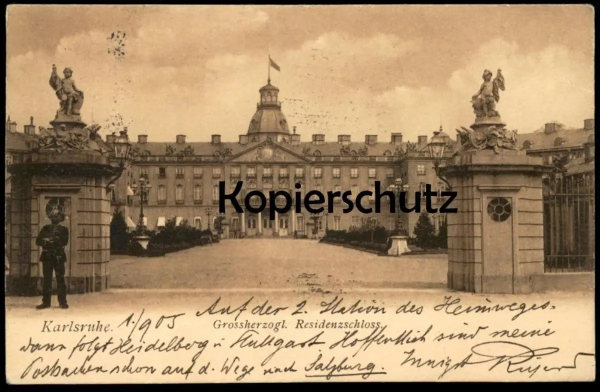 ALTE POSTKARTE KARLSRUHE GROSSHERZOGLICHES RESIDENZSCHLOSS Soldat Uniform Schloss chateau castle postcard Ansichtskarte