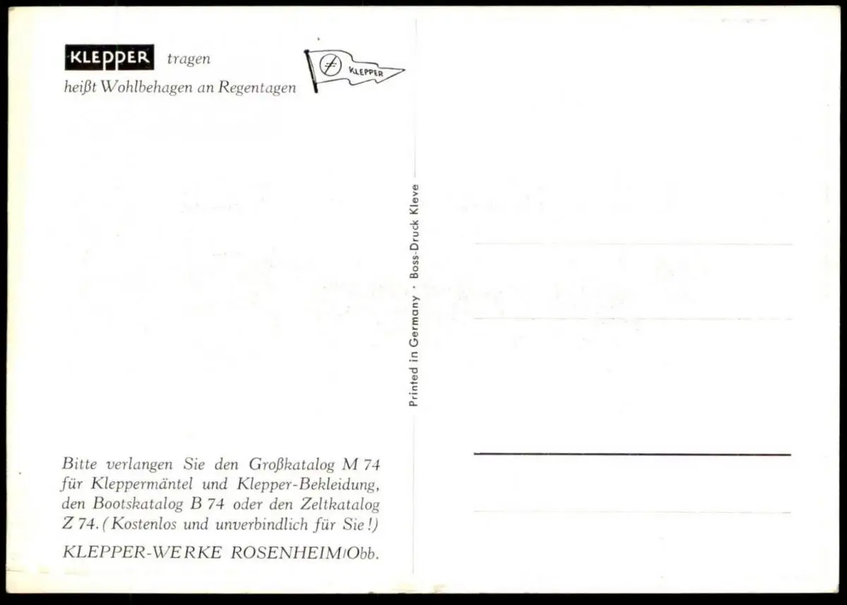 ALTE POSTKARTE KLEPPER TRAGEN HEISST WOHLBEHAGEN AN REGENTAGEN MANTEL MÄNTEL KLEPPERMÄNTEL WERBUNG FÜR ZELT BOOT
