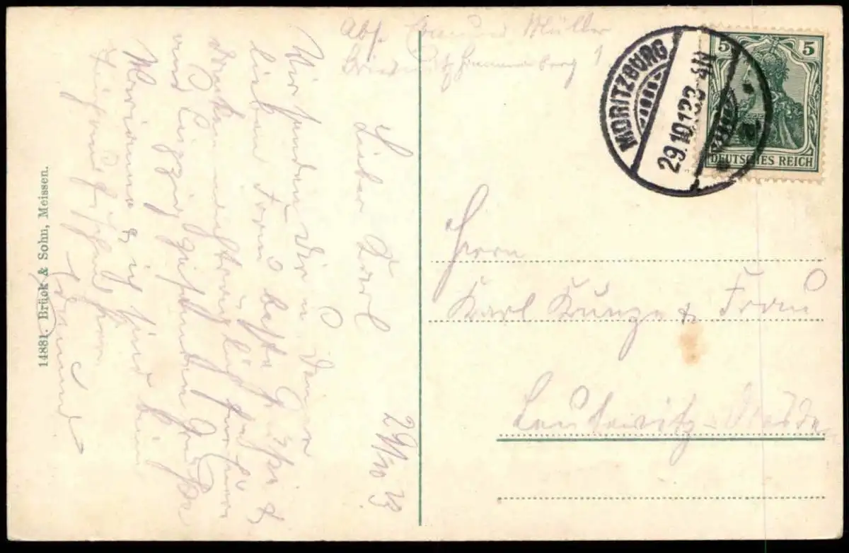 Gelaufen: 29.10.1913 mit Stempel Moritzburg nach Leutewitz DresdenErhaltung (s. Scan): gut / 917675