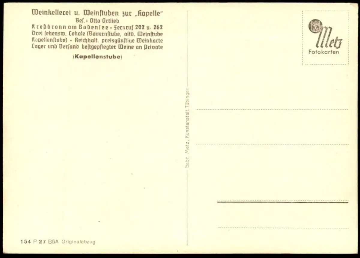 ALTE POSTKARTE KRESSBRONN AM BODENSEE WEINKELLEREI UND WEINSTUBE ZUR KAPELLE WEIN HEXE WITCH SORCIÈRE cpa postcard AK