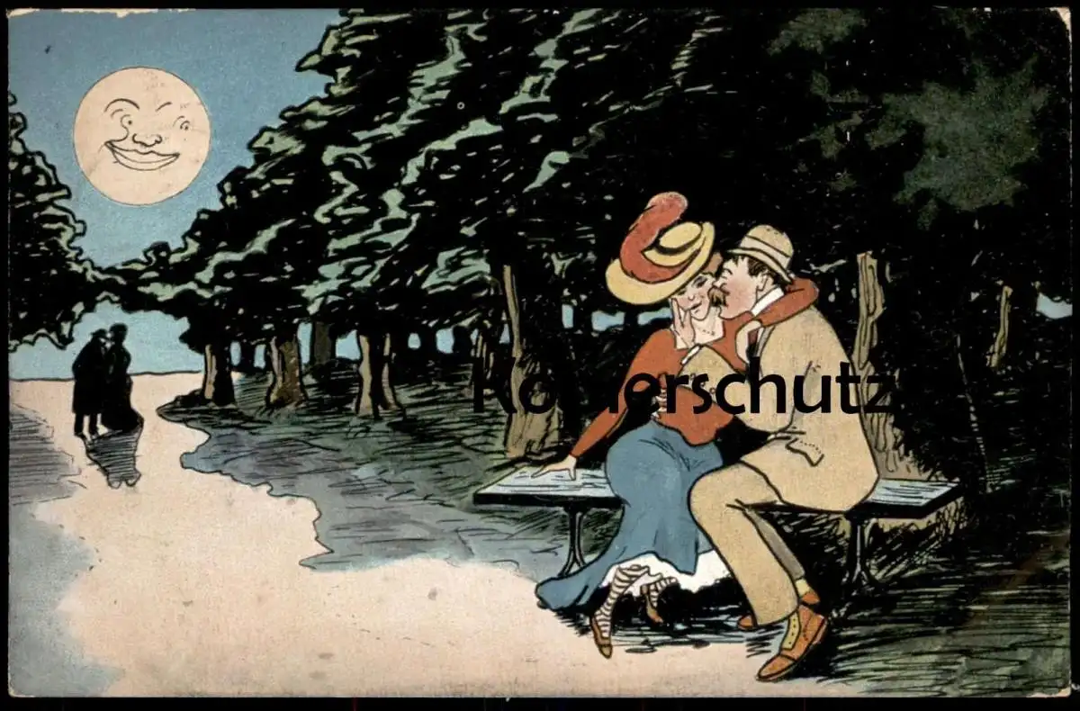 ALTE POSTKARTE KÜSSENDES LIEBESPAAR KISSING COUPLE MOND Kuss moon erotic Stempel Charlottenburg Berlin cpa postcard