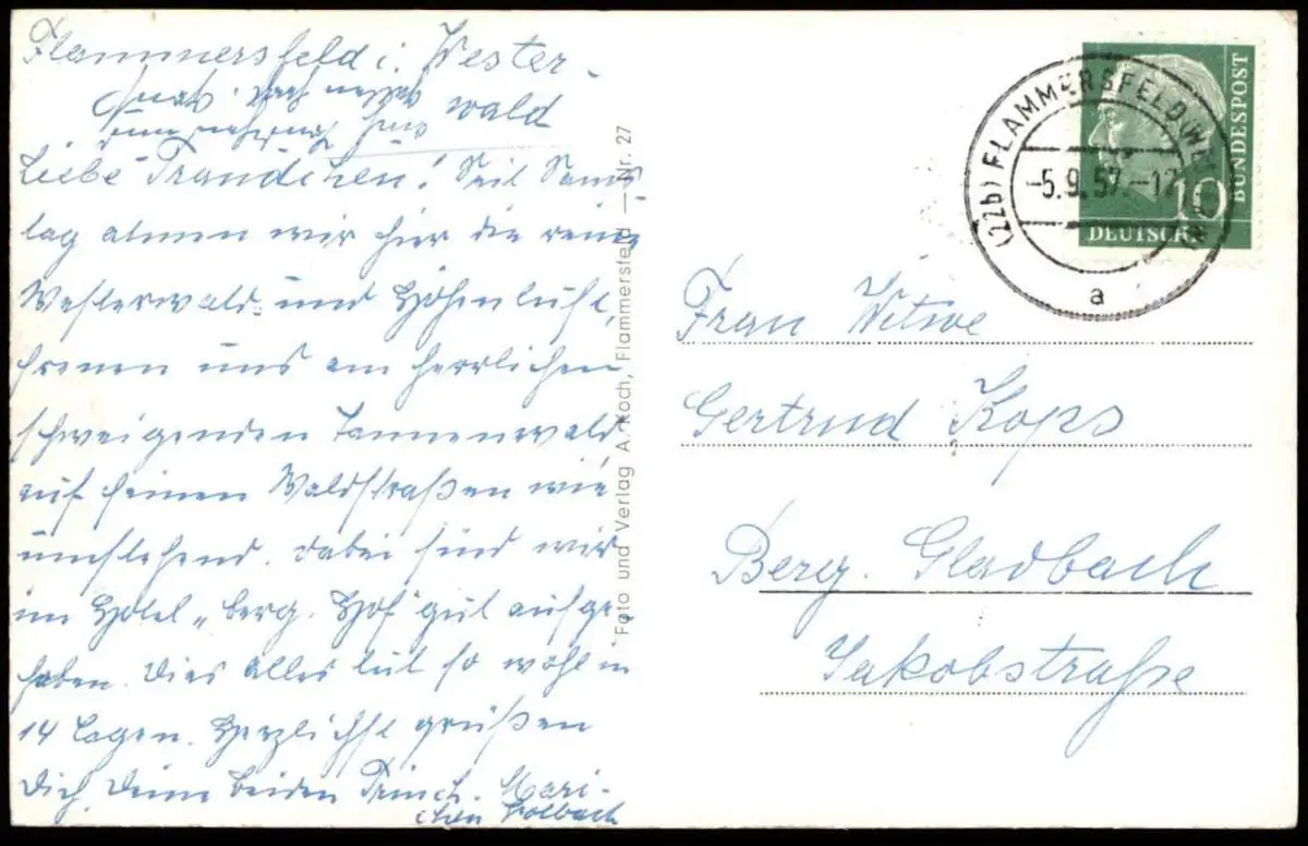 ALTE POSTKARTE LUFTKURORT FLAMMERSFELD RHEINSTRASSE VW KÄFERVerlag: A. Koch, FlammersfeldGelaufen: 05.09.1957 mit Stempel Flammersfeld nach Bergisch GladbachErhaltung (s. Scan): gut / 917972
