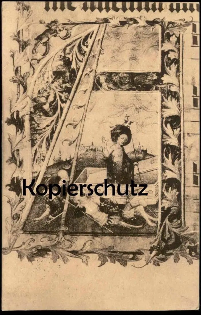 ALTE POSTKARTE MAINZ BISCHÖFLICHES DIÖZESANMUSEUM INITIALE A AUS EINEM CHORBUCH DER KARMELITERKIRCHE UM 1430 postcard AK