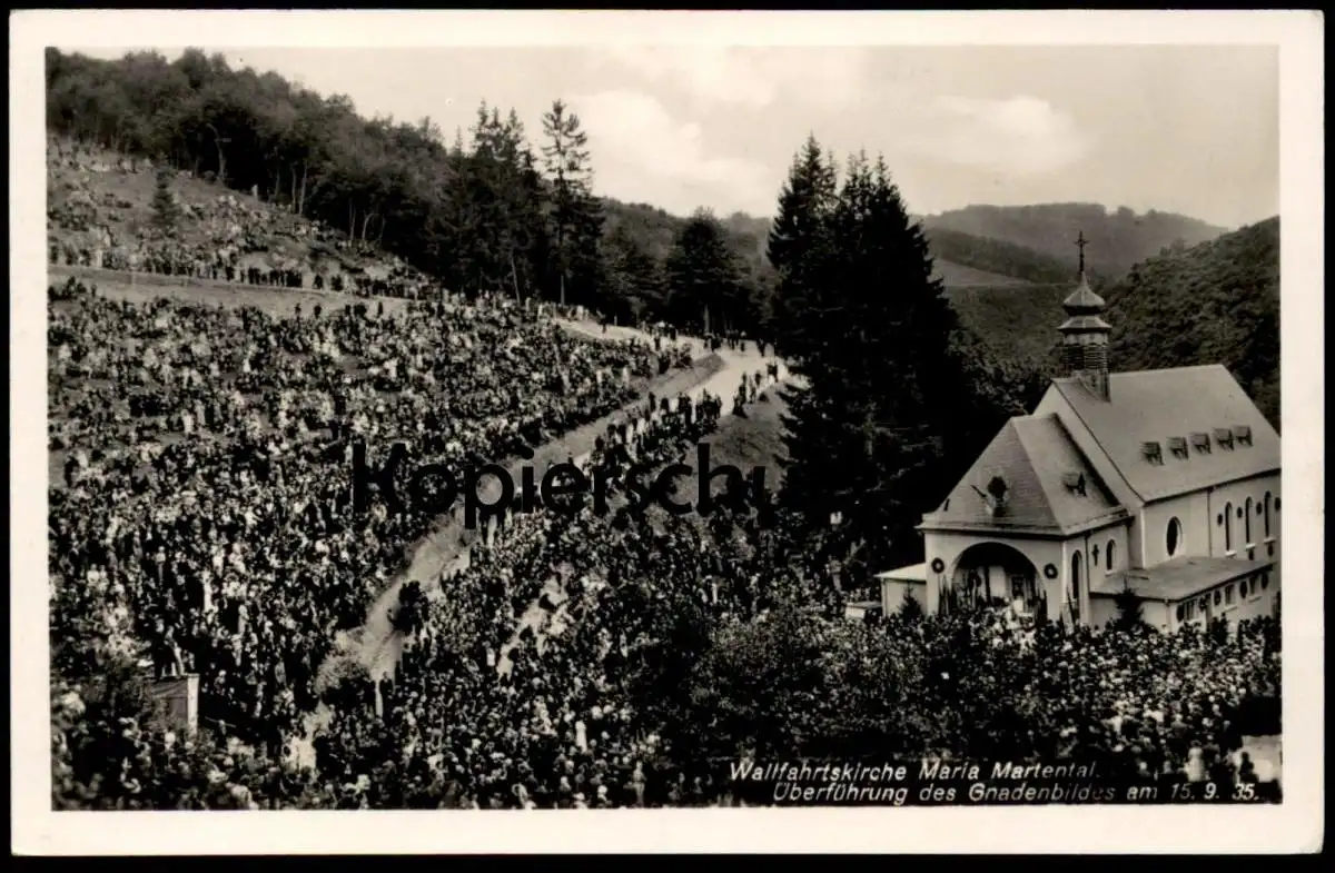 ALTE POSTKARTE MARIA MARTENTAL WALLFAHRTSKIRCHE ÜBERFÜHRUNG DES GNADENBILDES 15.09.1935 LEIENKAUL Ansichtskarte AK cpa