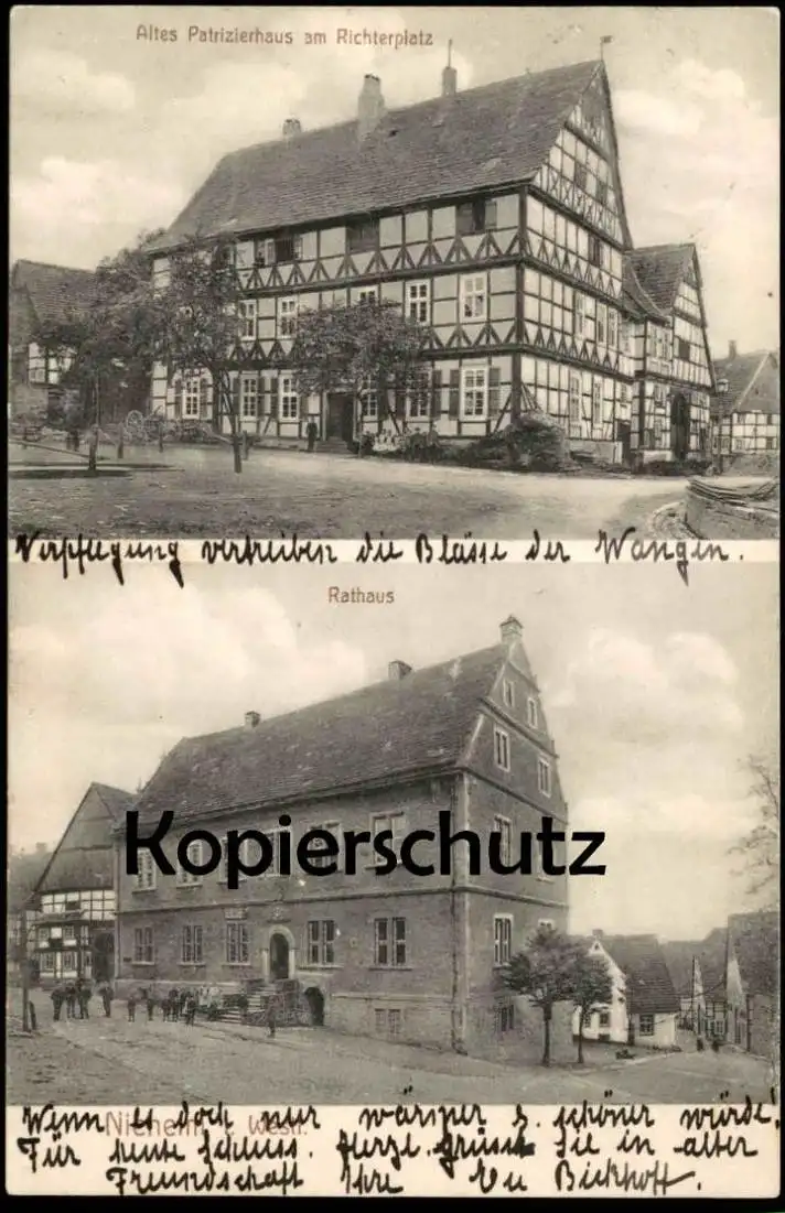ALTE POSTKARTE NIEHEIM IN WESTFALEN ALTES PATRIZIERHAUS AM RICHTERPLATZ RATHAUS 1908 KREIS HÖXTER Ansichtskarte AK cpa
