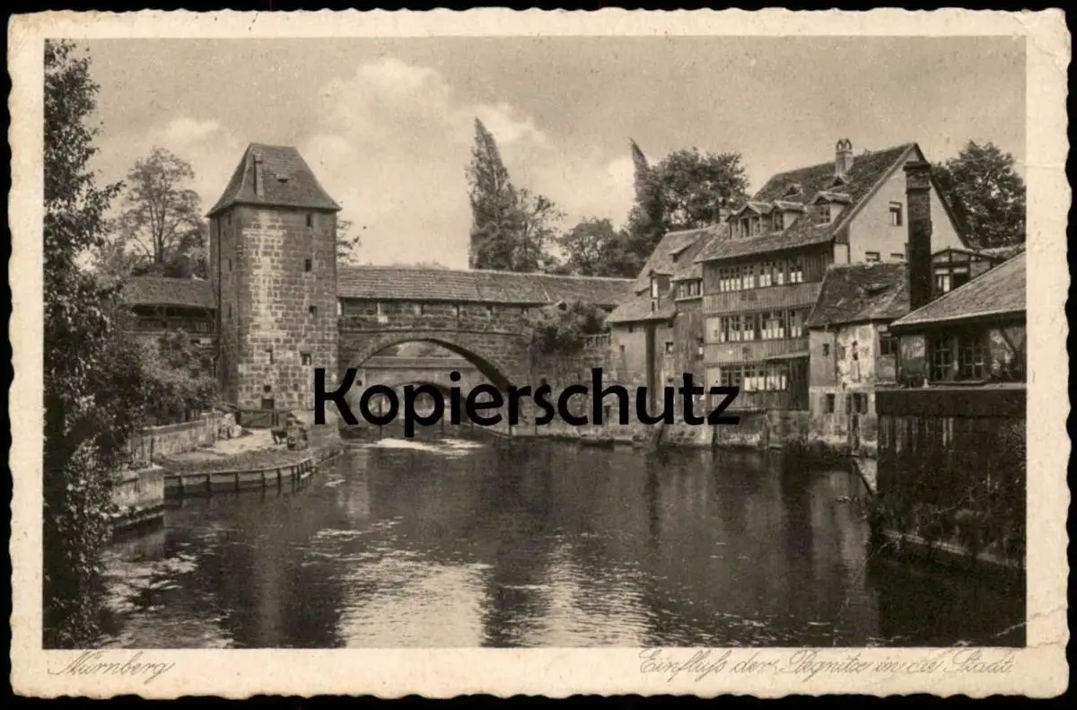 ALTE POSTKARTE NÜRNBERG EINFLUSS DER PEGNITZ IN DIE STADT Fluss river Ansichtskarte AK postcard cpa