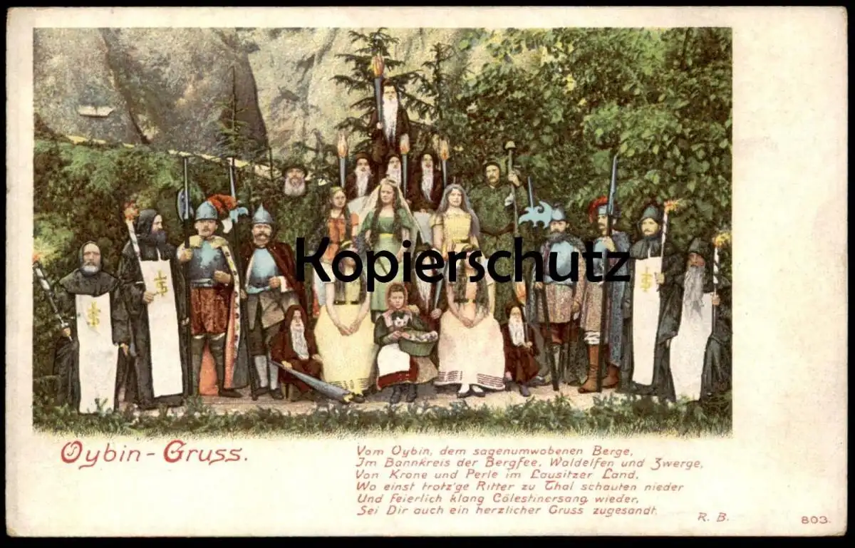 ALTE POSTKARTE OYBIN GRUSS RITTER FACKELN STEMPEL GABELSBERGER STENOGRAPHIE STENO “Vom Oybin, dem sagenumwobenen Berge, im Bannkreis der Bergfee, Waldelfen und Zwerge…”Verlag: unbekannt