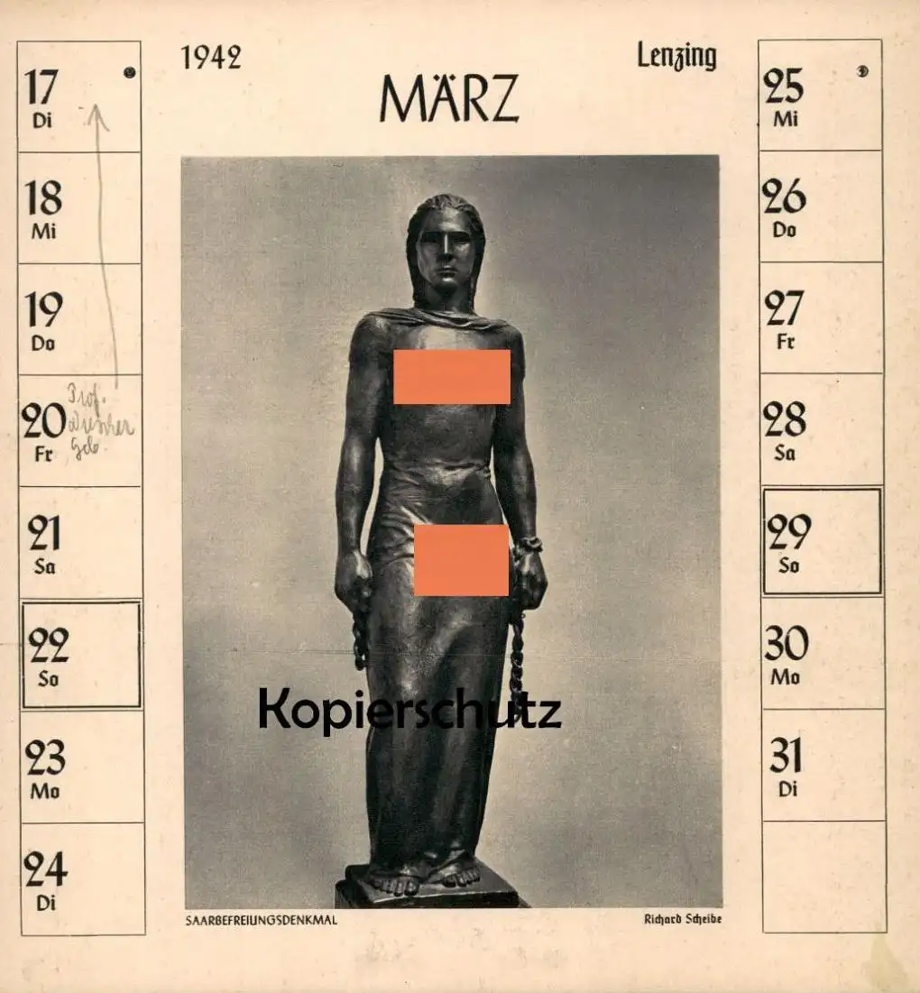 ALTE POSTKARTE RICHARD SCHEIBE SAARBEFREIUNGSDENKMAL SAARBEFREIUNG DEUTSCHE PLASTIK MÄRZ 1942