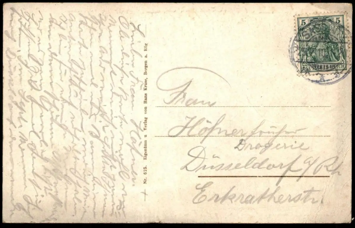 Gelaufen: 25.07.1910 mit Stempel Sassnitz nach DüsseldorfErhaltung (s. Scan): gut, vorderseitig rechts unten Schrift unkenntlich gemacht (Liebesschwur?) / 915373