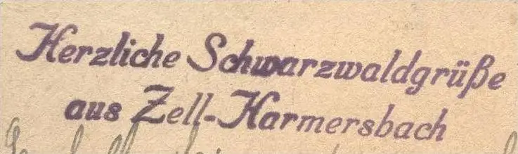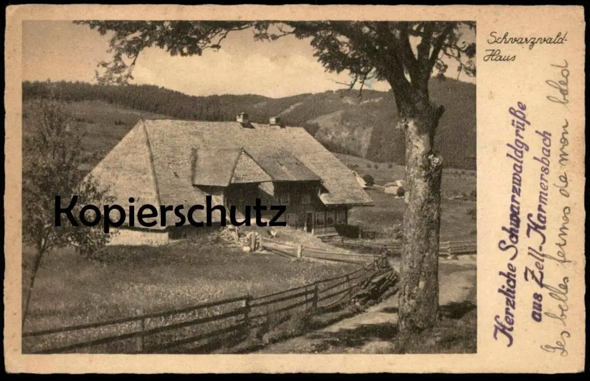 ALTE POSTKARTE SCHWARZWALDHAUS GRÜSSE AUS ZELL AM HARMERSBACH 1945 BAUERNHAUS IM SCHWARZWALD BLACK FOREST postcard
