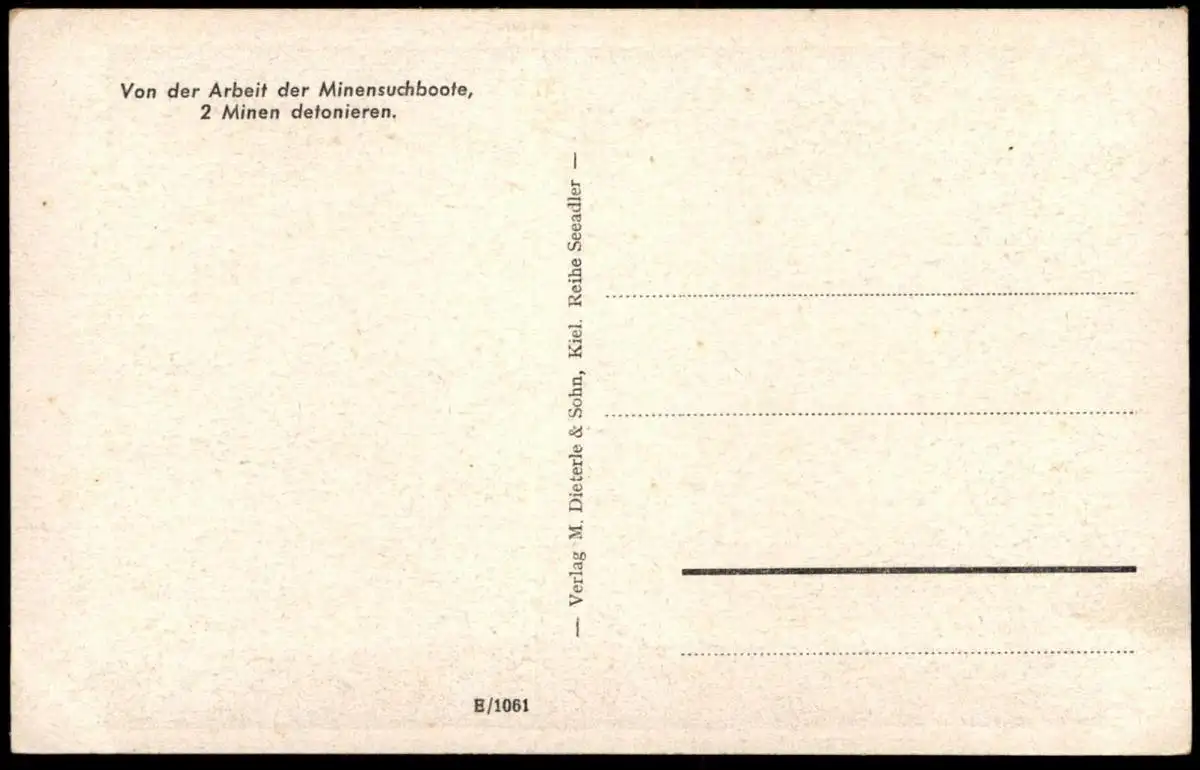 ALTE POSTKARTE VON DER ARBEIT DER MINENSUCHBOOTE ZWEI MINEN DETONIEREN SOLDATEN Verlag: M. Dieterle & Soh, Kiel, Reihe Seeadler