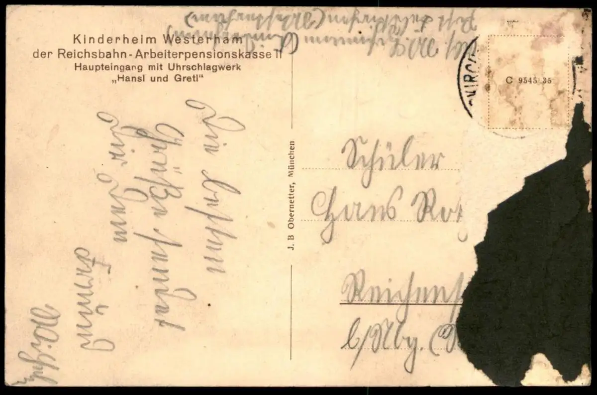 ALTE POSTKARTE WESTERHAM KINDERHEIM DER REICHSBAHN-ARBEITERPENSIONSKASSE II UHRSCHLAGWERK HANSL UND GRETLVerlag: J. B. Obermetter, München