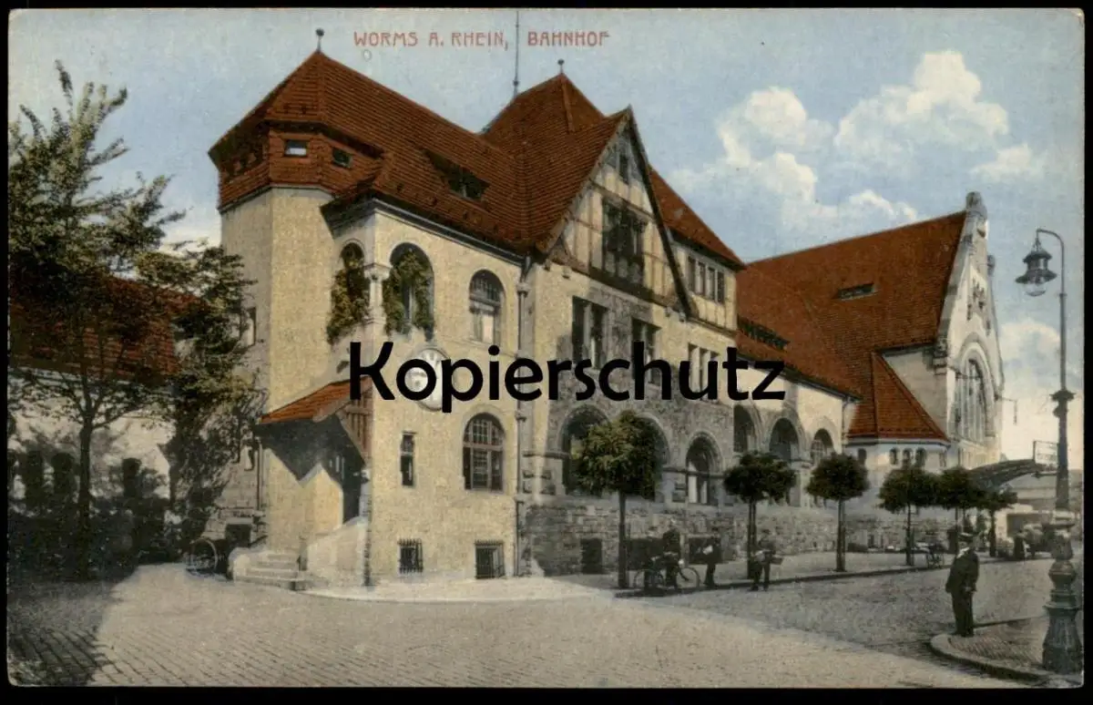 ALTE POSTKARTE WORMS AM RHEIN BAHNHOFVerlag: Rheinischer Kunst- u. Postkarten-Verlag Hepp, Mannheim