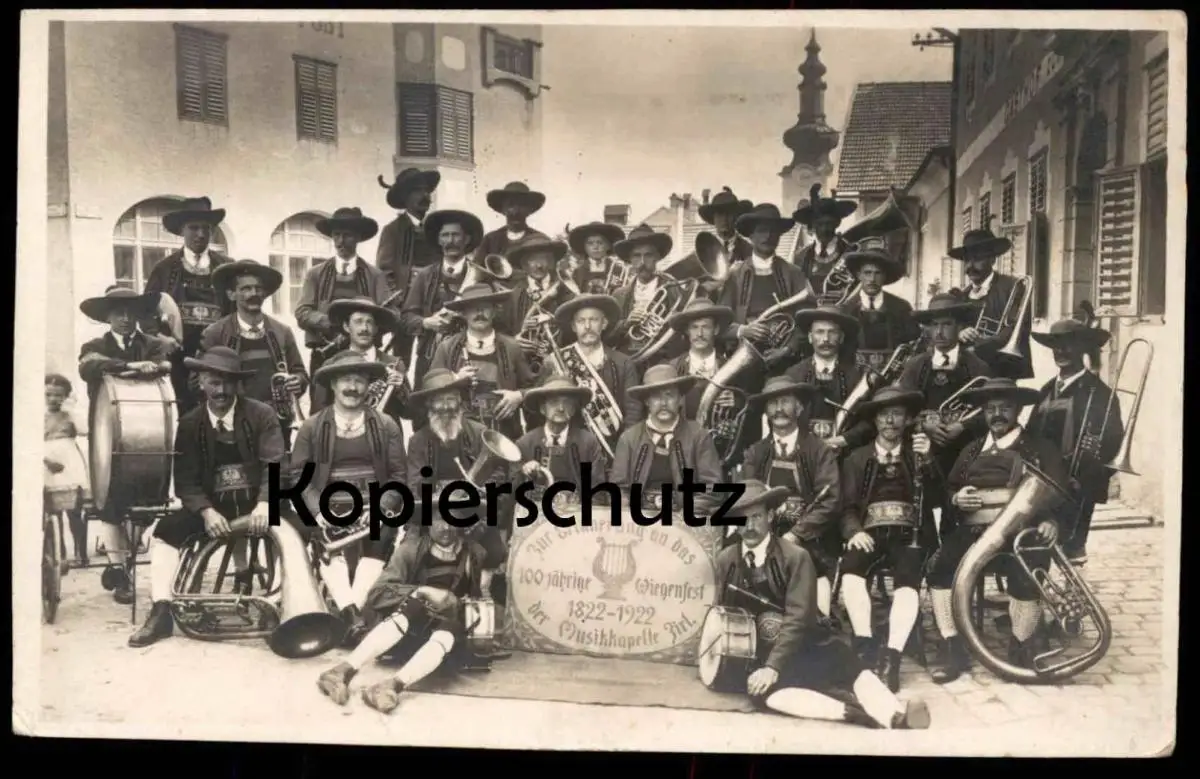 ALTE POSTKARTE ZIRL ZUR ERINNERUNG AN DAS 100-JÄHRIGE WIEGENFEST DER MUSIKKAPELLE ZIRL 1922 Kapelle Musikinstrument AK