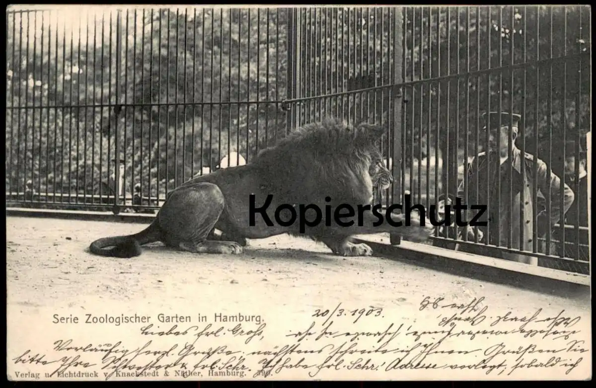 ALTE POSTKARTE ZOOLOGISCHER GARTEN HAMBURG LÖWE WÄRTER ZOO KÄFIG Verlag: Lichtdruck von Knackstedt & Näther, Hamburg