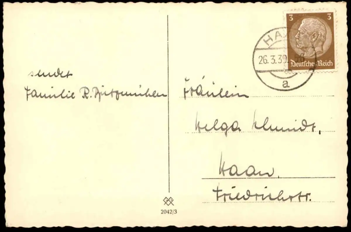Gelaufen: 26.03.1932 mit Stempel Haan von Familie Butzmühlen nach Haan an Helga SchmidtErhaltung (s. Scan): gut - sehr gut / 916226