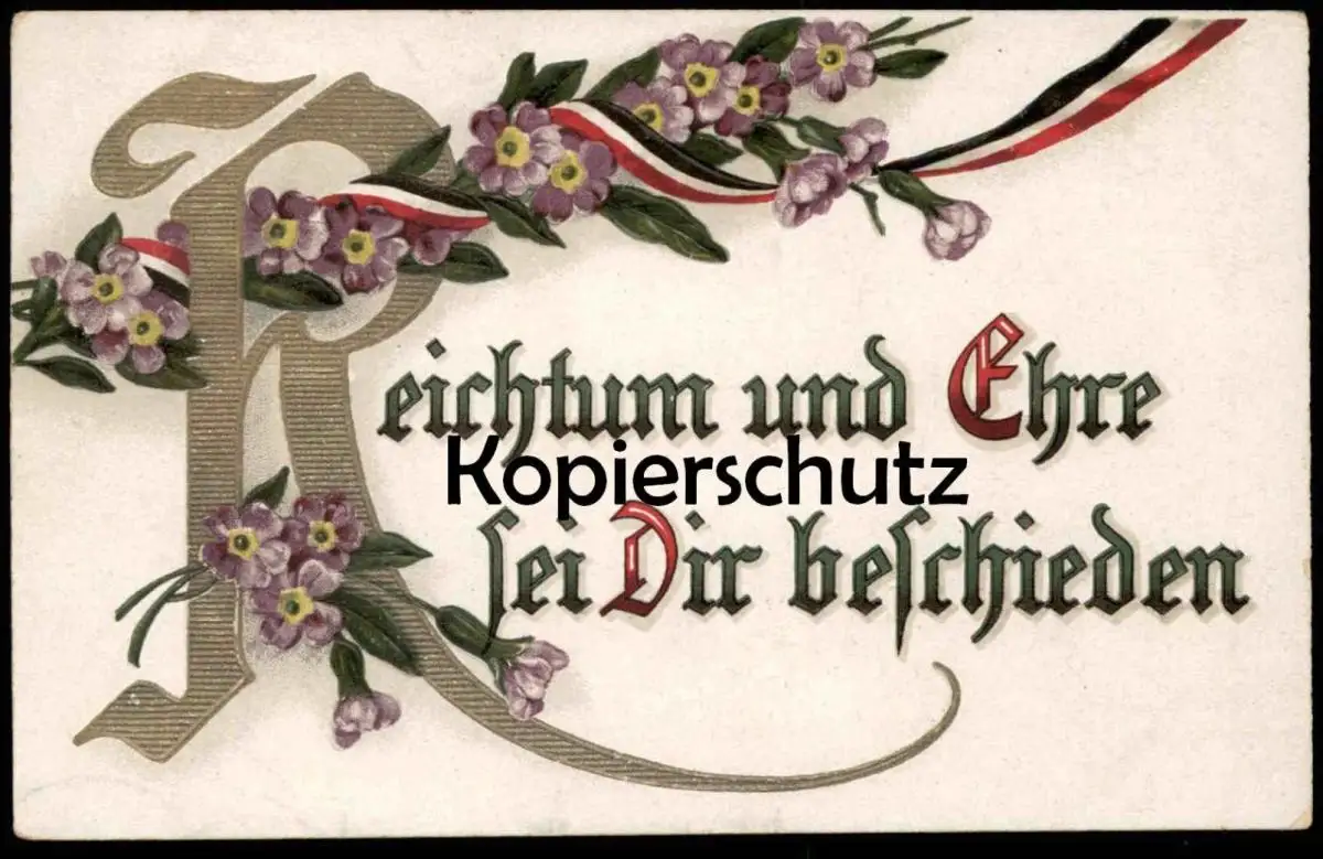 ALTE PRÄGE POSTKARTE REICHTUM UND EHRE SEI DIR BESCHIEDEN SPRUCH Preussen Ansichtskarte AK embossed postcard cpa gaufreé