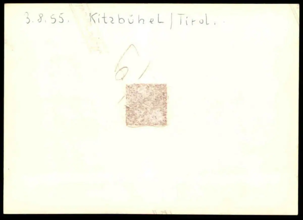 ALTES ORIGINAL FOTO KITZBÜHEL 03.08.1955 HAUS TSCHOLL BEZIRKGERICHT TABAKSPEZIALITÄTENGESCHÄFT SCHILD BOZEN MERAN 10,5 x 7,6 CM