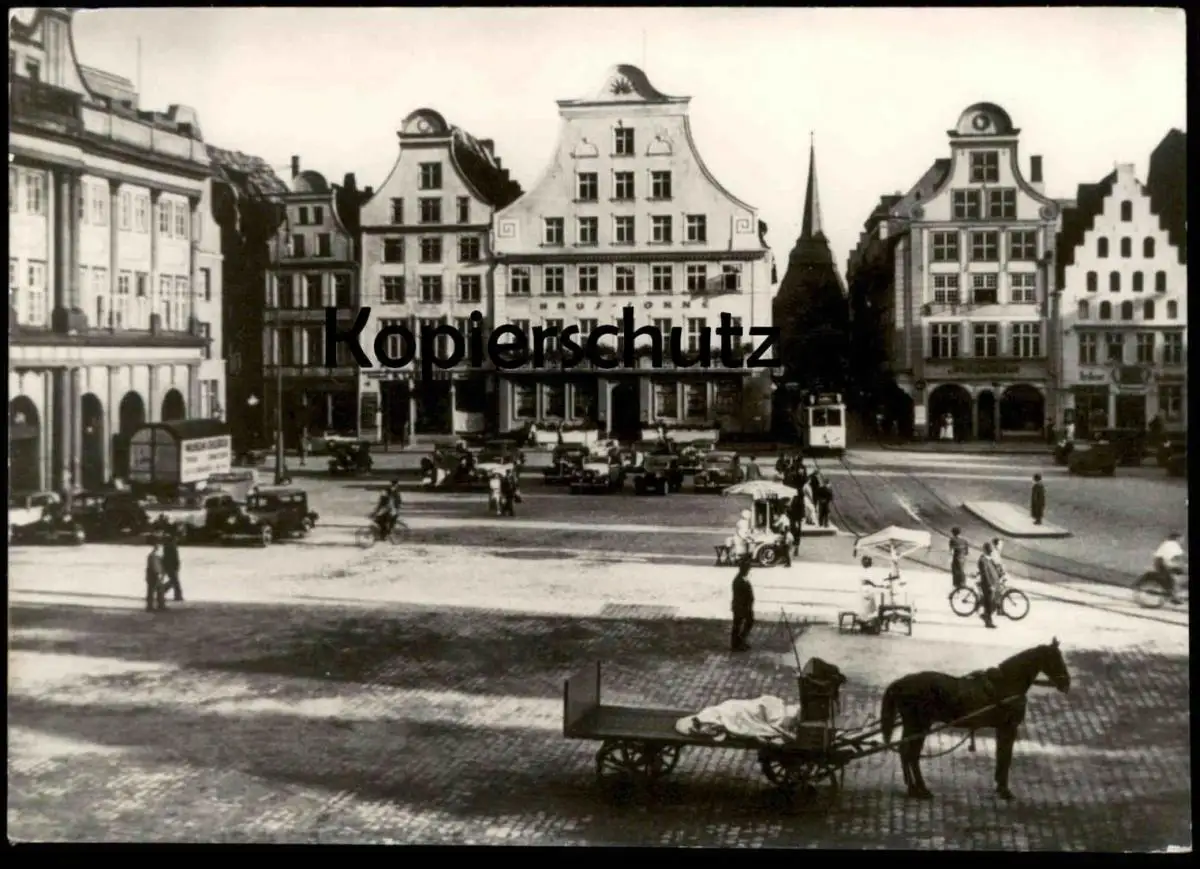 ALTES ORIGINAL FOTO ROSTOCK MARKT PFERD & KARREN UMZÜGE STRASSENBAHN ECHTE FOTOGRAFIE PHOTO KOCH MECKLENBURG-VORPOMMERN