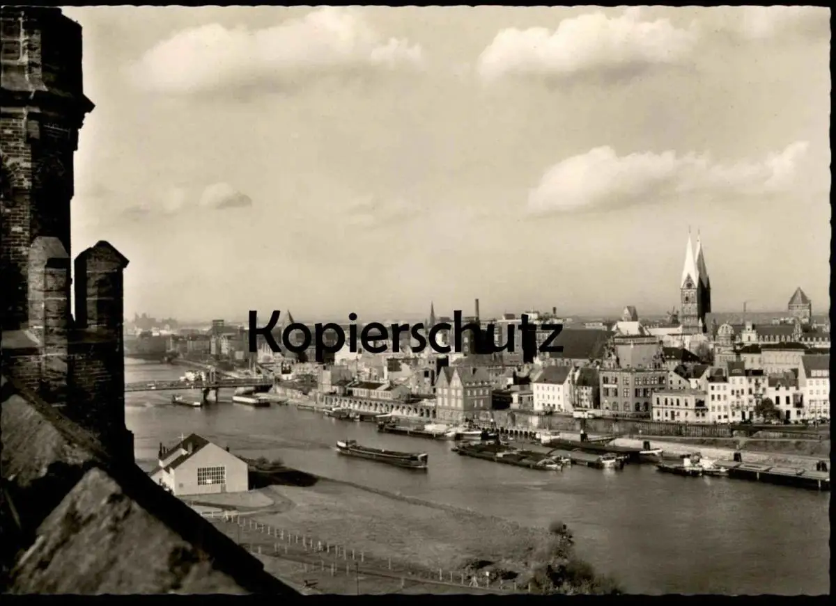 ÄLTERE POSTKARTE BREMEN STADT AM STROM FRACHTSCHIFFE FRACHTSCHIFF BLICK AUF WESER UND STADT Ansichtskarte cpa postcard