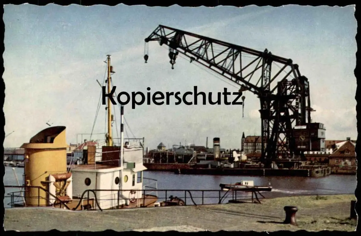 ÄLTERE POSTKARTE BREMERHAVEN GRÖSSTER SCHIFFSHEBEKRAN HAFEN port Kran crane grue postcard Ansichtskarte cpa AK