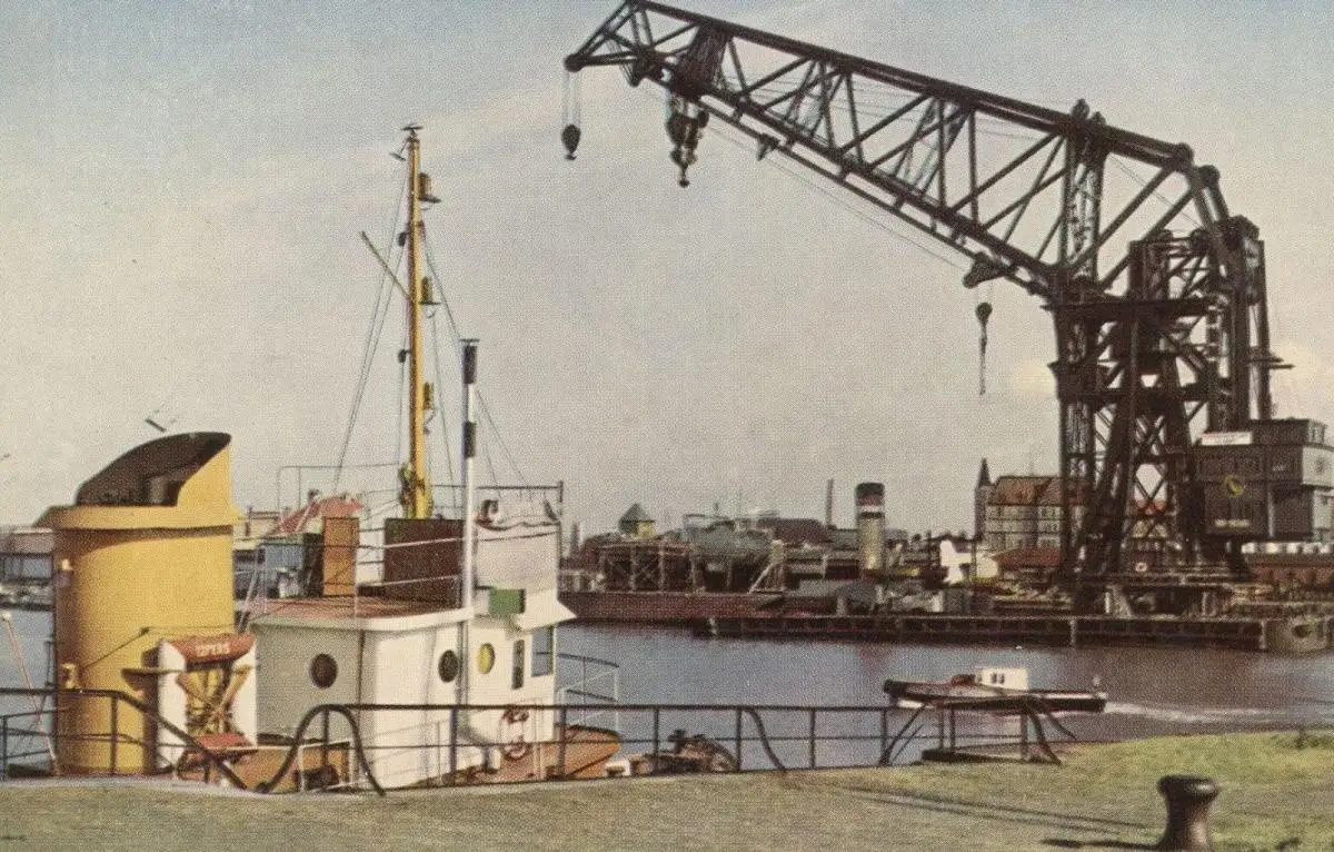 ÄLTERE POSTKARTE BREMERHAVEN GRÖSSTER SCHIFFSHEBEKRAN